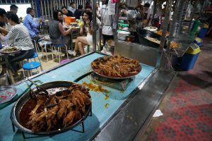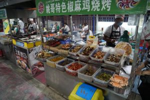 Am Abend bin ich zu dem Yuquan Fulß Park gegangen. Danach war ich im Nachtmarkt und habe dort Abendbrot gegessen – mit ofenfrischem Fladenbrot.