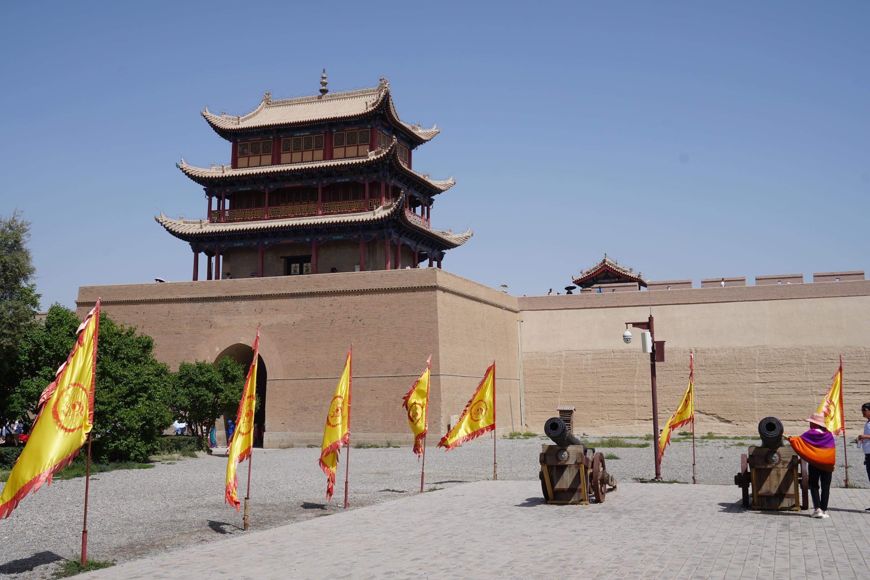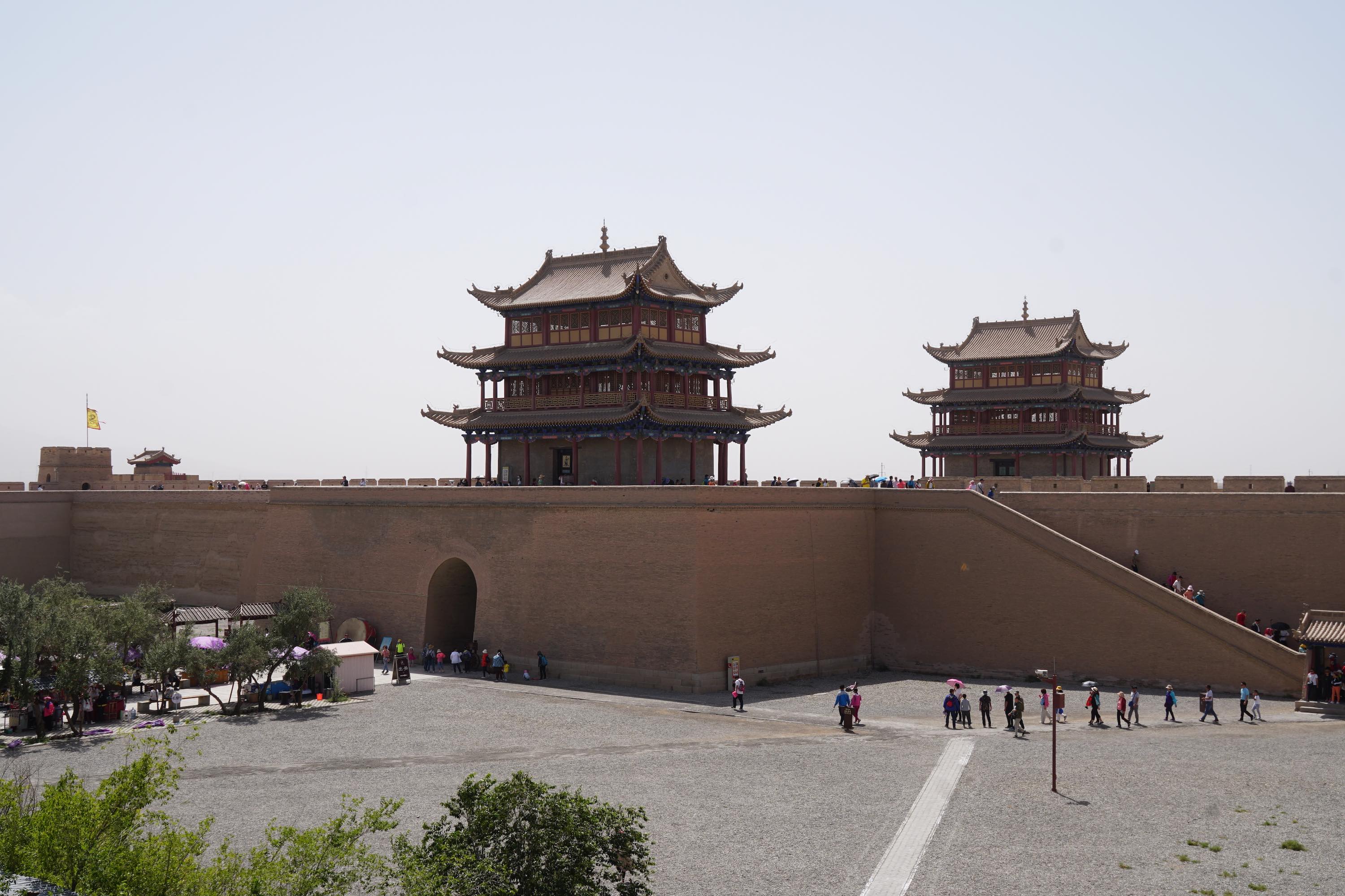 An dem Jiayuguan Pass gibt es eine alte Burg am Ende der Chinesischen Mauer. Sehr eindrucksvoll.
