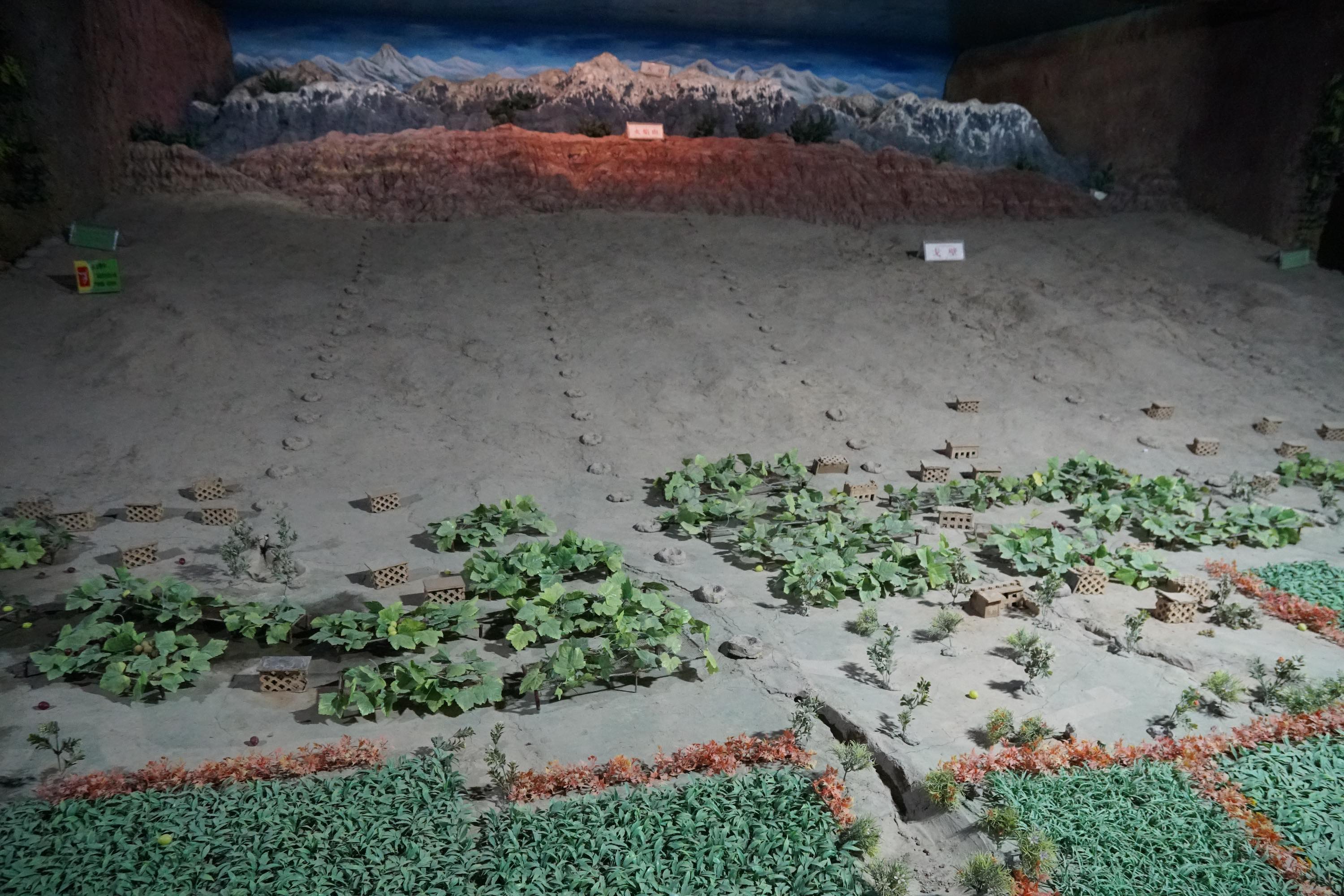 Many oasis here are irrigated using the Karez water system. With that water from the mountains is lead through subterranean tunnels into the desert. I went to a Karez museum here in Turpan.