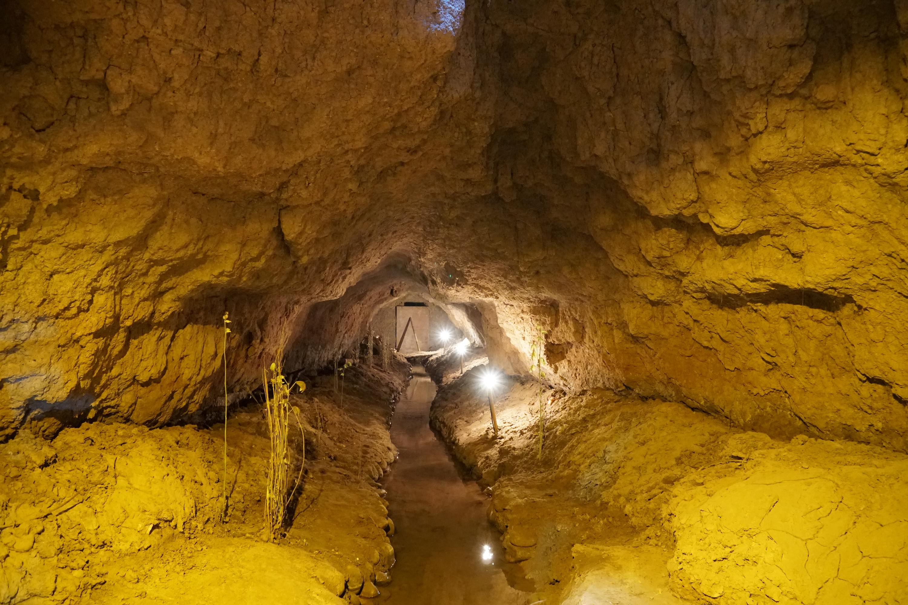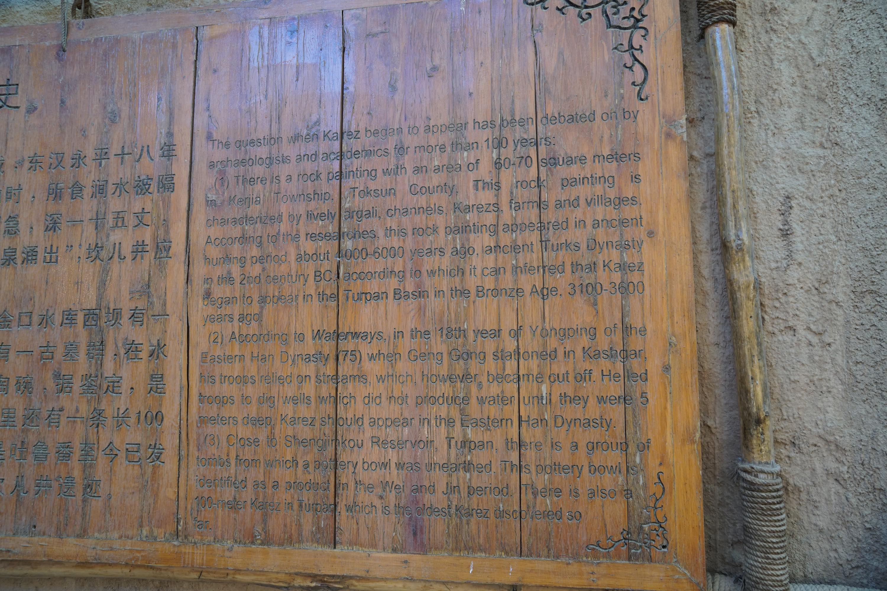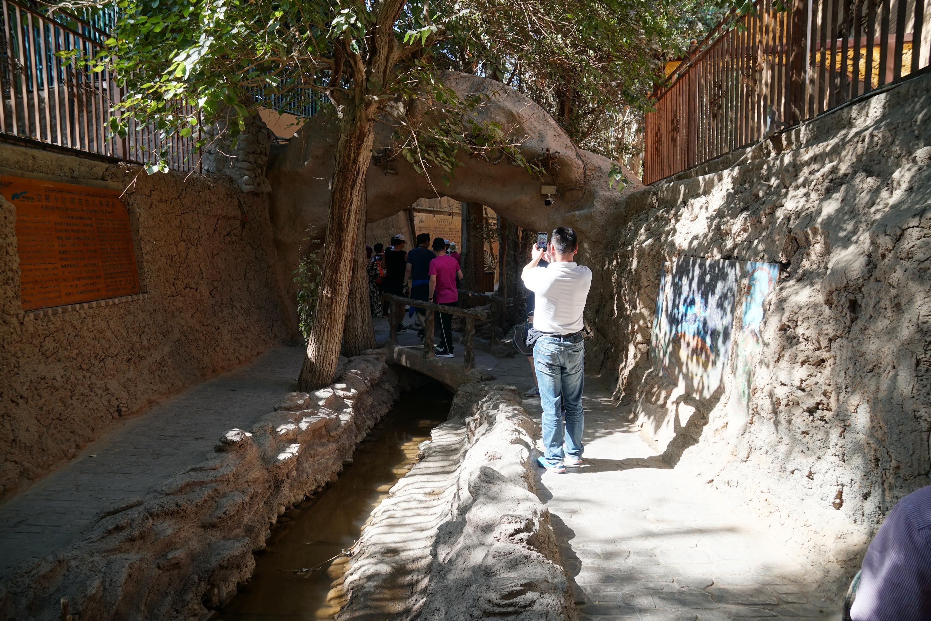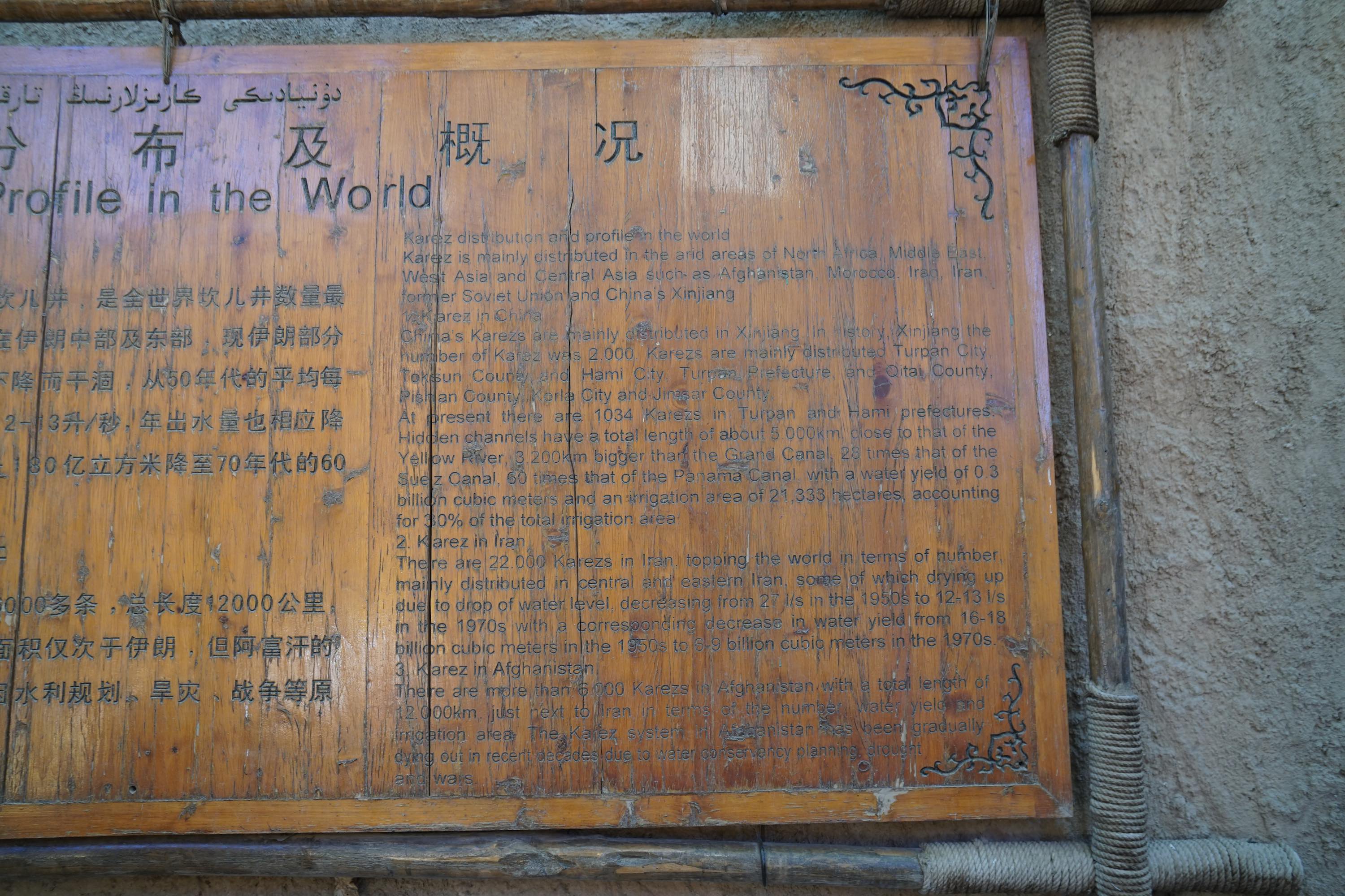 Viele Oasen hier werden mit dem Karez-Bewässerungssystem mit Wasser versorgt. Dabei wird Wasser von den Bergen in unterirdischen Tunnels in die Wüste geleitet. Ich war in einem Karez Museum in Turpan.