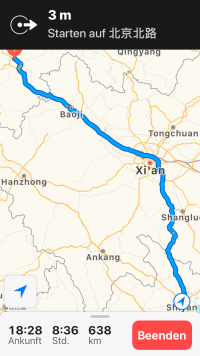 Heute bin ich weiter nach Tianshui gefahren. Ich habe nicht in Xi’an gestoppt, weil ich dort schon vorheriges Jahr (2017) war. Ich einen Eintrag mit Bildern davon eingefügt: Xi’An 2017. Dieser Beitragt ist zum Thema Auto fahren: Die Autobahnen in China sind super. Allerdings ist das Tempo of sehr begrenzt – siehe unten. Ich benutze Apple maps zum navigieren – funktioniert meist recht zuverlässig. Andere apps gibts leider nur auf Chinesisch (soweit ich weiß).