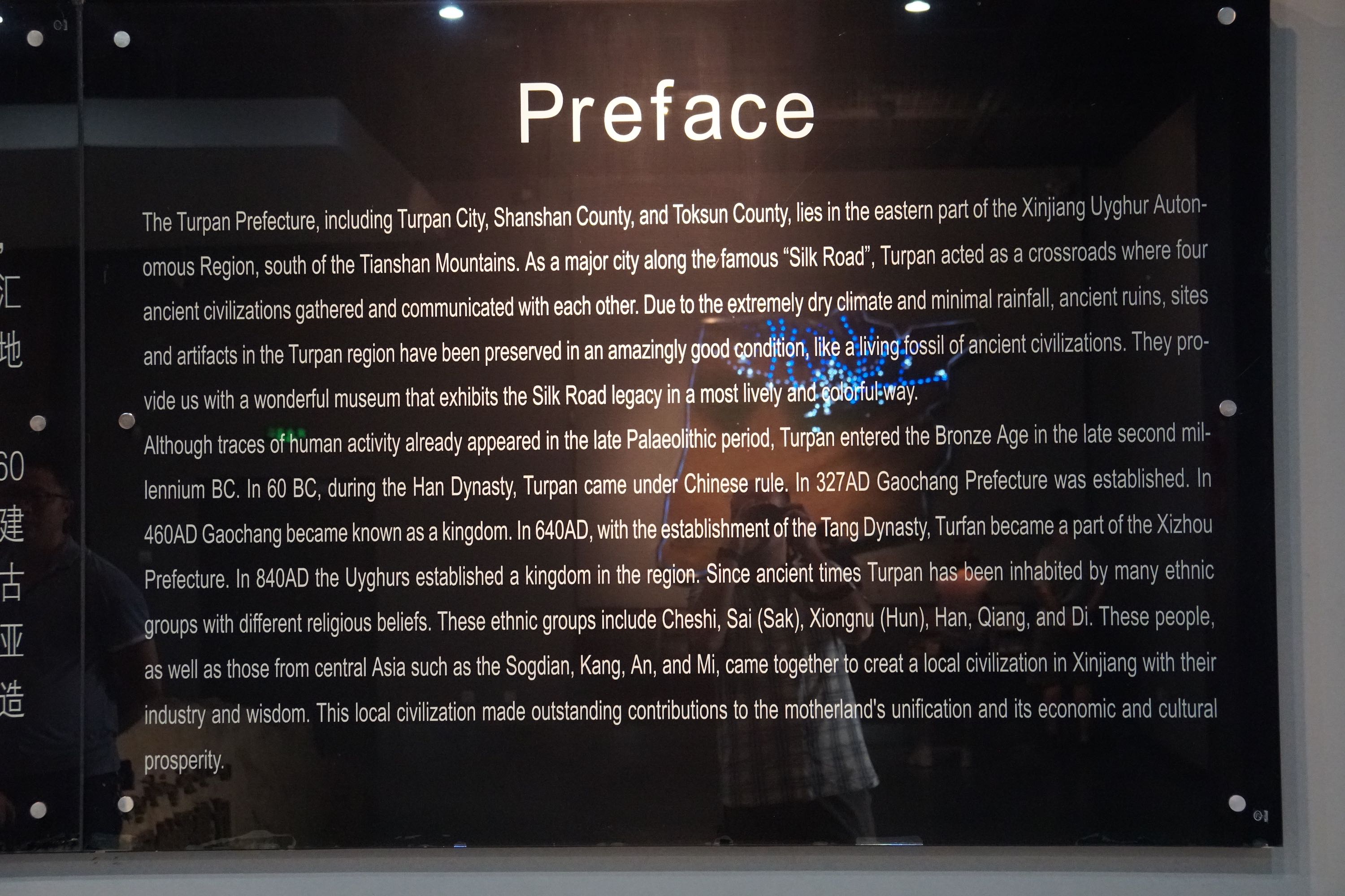 Ich bin weiter nach Turpan (570.000 Einwohner). In ein sehr schönes Hotel (Turpan Silk Road Lodges – The Vines). Die Stadt selber ist auch recht nett und entspannt – es gibt viel zu sehen – deswegen bin ich morgen auch noch hier. Heute bin ich in das Turpan Museum gegangen und habe die Stadt erkundet.