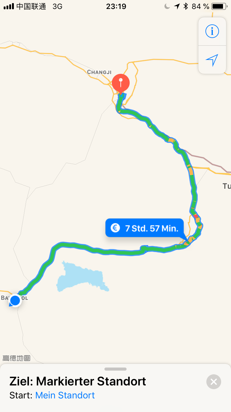 Ich heute bin nach Ürümqi gefahren, der Hauptstadt von Xinjiang (3,5 Millionen Einwohner). Die Fahrt hat lange gedauert – es wird eine neue Autobahn gebaut, deswegen gab es viele Baustellen. Am 2. Tag in Ürümqi bin ich zuerst in das Xinjiang Museum gegangen. Danach in den Hongshan Park und dann in den Volkspark. Am Abend war ich dann in einem (nachgebauten) traditionellen Markt und danach in einer Kultur-Show – war ganz OK.