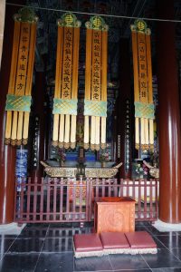 The Wudang Mountains (Shān 山 = Mountain) are about 30 km away from Shiyan. There are important Taoist temples – famous all over China and a UNESCO World Heritage site. Everything is well organized with buses that shuttle you between the different temples (see the video below!). I have been at four different places: Taizipo Tempel, Wudang taoist marterial arts academy, Zijin City with the Golden Tempel and the Monkey Valley.