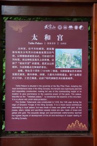 Die Wudang Berge (Shān 山 = Berg) sind ca. 30 km von Shiyan entfernt. Dort befinden sich bedeutende Taoistische Tempelanlagen – berühmt in ganz China und UNESCO Weltkulturerbe. Es ist alles super organisiert mit Bussen, die zwischen den verschiedenen Tempeln fahren (Video unten anschauen!). Ich war bei vier verschiedenen Stationen: Taizipo Tempel, Wudang taoistische Kampfkunstakademie, Zijin Stadt mit dem Goldenen Tempel und das Affental.