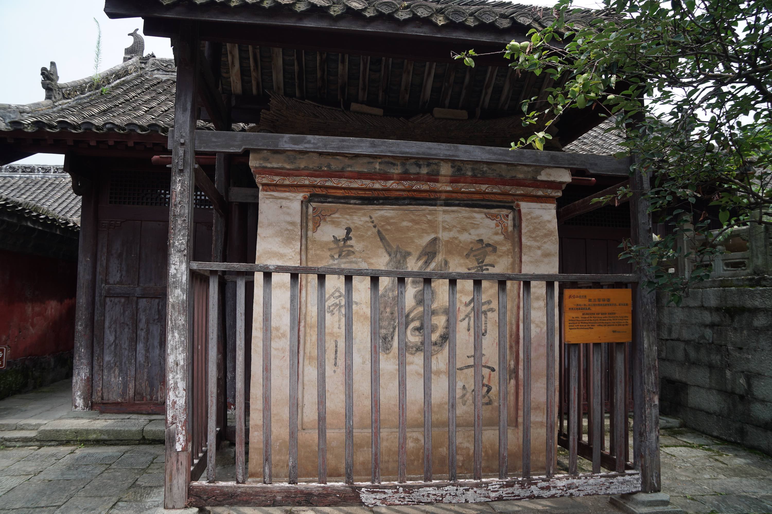 Parolen der Chinesischen Roten Armee von 1931 – auf den Tempel geschmiert.Slogans of the Chinese Red Army from 1931 – painted on the temple.