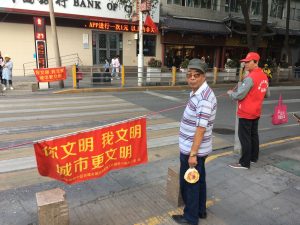 A common sight in China: All employees have to report and then also do sports together. These are employees of a restaurant.